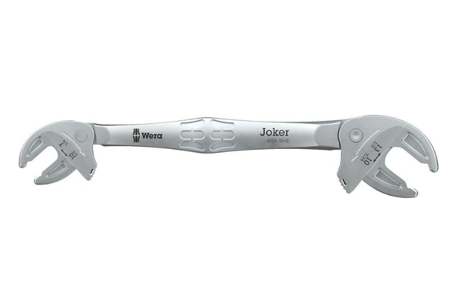 Article description Self-setting double spanner for hexagon screw heads and bolts with wrench sizes 7-10 and 10-13 (metric) or 1/4“-3/8” and 7/16“-1/2” (imperial). With its continuous and parallel jaws, the tool replaces several single spanner sizes. The required size is automatically and continuously set when attaching the tool to the hexagon bolt or screw. The integrated lever mechanism securely clamps the hexagon screw or bolt between the jaws, which significantly reduces the risk of slippage or damage. The ratchet feature ensures fast and consistent screwdriving without removing the tool. By using the corner-width rectangular prisms, a return angle of only 30° can be achieved. Ratchet feature and corner-width prism make it possible to work even in confined spaces. The adjustable Joker 6006 double spanner with ratchet functionality is the universal screwdriving tool. Self-setting. Gripping. Spanning. Code mm inch mm inch mm mm mm 05020330001 7.0; 8.0; 9.0; 10.0 1/4“; 5/16”; 3/8““ 10.0; 11.0; 12.0; 13.0 7/16”; 1/2" 8.0 10.0 161.0
