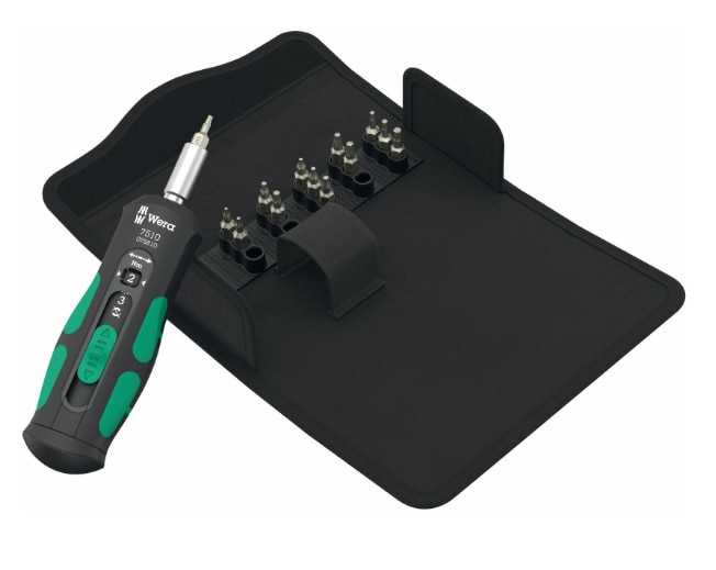 Article description 14-piece tool set. For professional screwdriving/professional fine adjustment AND for torque-controlled screwdriving. Secure slip-over torque mechanism with quick clockwise/counterclockwise setting and five selectable tightening torques (1.0; 1.5; 2.0; 2.5; 3.0 Nm) and one fixed position (Torque Lock) for unlimited loosening and tightening moments. Quick-release holder for high robustness; suitable for bits with 1/4“ external hexagon drive. 14 tough bits (25 mm length) for TORX PLUS®, TORX® and hexagonal socket screws. The tool set is particularly suitable for bolting carbide inserts. The Safe-Torque Speed 7510 torque wrench with its five selectable torque values recommended by leading carbide tool manufacturers ensures a reliable torque-controlled screw connection of replaceable carbide inserts. Particularly suitable for bolting carbide inserts Torque screwdriver with quick torque adjustment Easy and quick torque setting Fixed position (Torque Lock) for unlimited tightening and loosening moments Secure slip-over torque function for clockwise/anti-clockwise torque-control Quick and easy setting of the selectable tightening torques (1.0; 1.5; 2.0; 2.5; 3.0 Nm) For bits with 1/4” external hexagon drive, also suitable for socket wrench inserts via adapter Tools with Hex-Plus profile prevent premature rounding of hexagonal socket screws Suitable for docking with the Wera 2go system Torque screwdriver with quick torque adjustment For bolting carbide inserts The tool set is particularly suitable for bolting carbide inserts. The Safe-Torque Speed 7510 torque wrench with its five selectable torque values recommended by leading carbide tool manufacturers ensures a reliable torque-controlled screw connection of replaceable carbide inserts. Five selectable tightening torques Five selectable tightening torques (1.0; 1.5; 2.0; 2.5; 3.0 Nm) and one fixed position (Torque Lock) for unlimited tightening and loosening moments. Simple setting Easy setting of the selectable tightening torques. Excess-load signal Distinctly audible and noticeable excess-load signal when the pre-set torque is reached. Storage and transport Storage and transport in a robust and compact textile roll bag, so the tool is always close at hand. Flexible due to hook and loop fastener strips The textile box features a fleece zone at the back. Using the provided self-adhesive hook and loop fastener strips, the textile box can be attached to the Wera 2go components. Or to the wall, shelf or workshop trolley. 7510/14 Safe-Torque Speed Tool set for carbide inserts, 14 pieces Set contents: 7510 Kraftform Safe-Torque Speed Torque screwdriver, 1-3 Nm 05075810001 : 1x 1/4" x 1.0 Nm x 1.5 Nm x 2.0 Nm x 2.5 Nm x 3.0 Nm x 147.5 mm 867/1 IP TORX PLUS® bits 05066276001 : 1x 7 IP x 25 mm 05066278001 : 1x 8 IP x 25 mm 05066279001 : 1x 9 IP x 25 mm 05066280001 : 1x 10 IP x 25 mm 05066282001 : 1x 15 IP x 25 mm 867/1 TORX® bits 05066494001 : 1x TX 7 x 25 mm 05066495001 : 1x TX 8 x 25 mm 05066496001 : 1x TX 9 x 25 mm 05066485001 : 1x TX 10 x 25 mm 05066486001 : 1x TX 15 x 25 mm 840/1 Z bits 05056305001 : 1x 2 x 25 mm 05056310001 : 1x 2.5 x 25 mm 05056315001 : 1x 3 x 25 mm